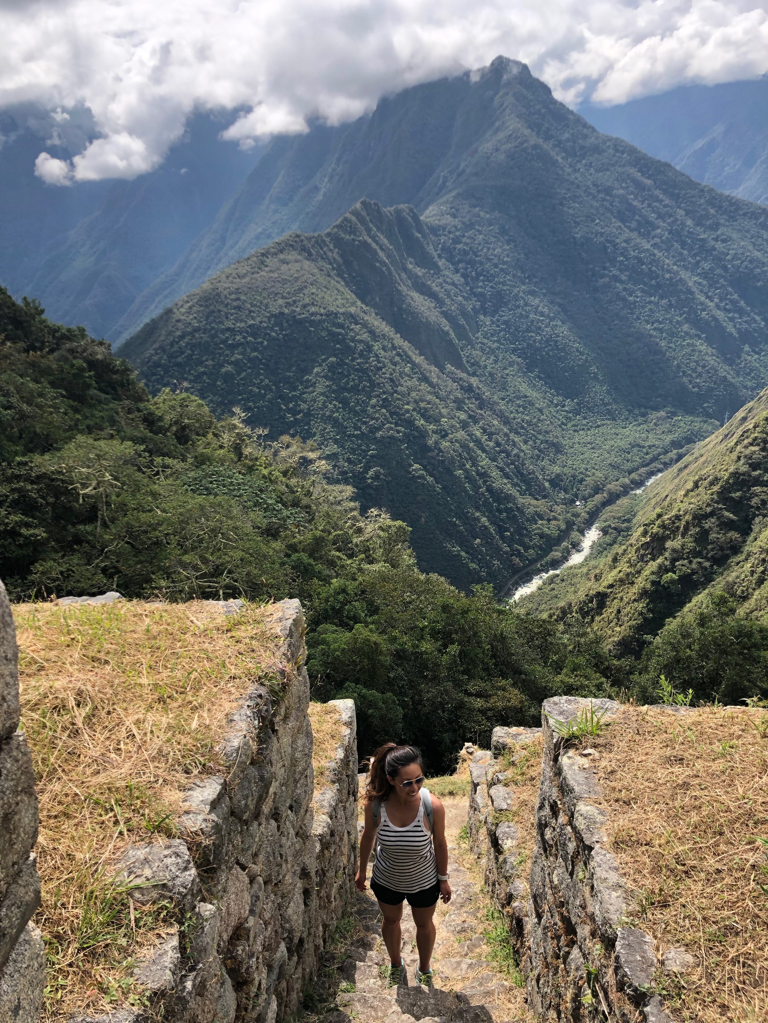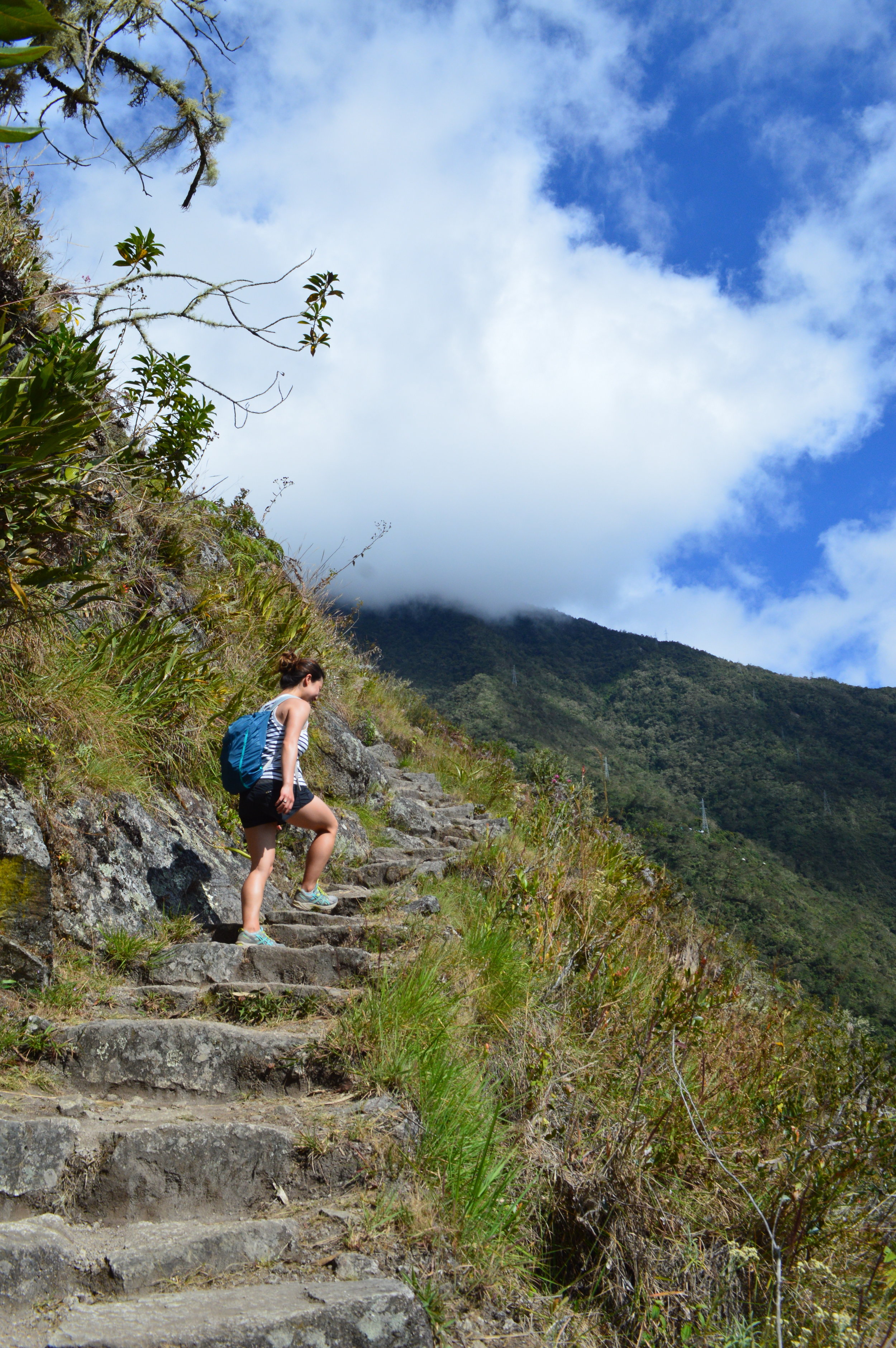 From Wiñay Wayna, the trail is a consistent rollercoaster of ascents and descents, but nothing too grueling. However, the last 100 feet before reaching Intipunku (the Sun Gate) was no joke. The steps on the ascending stairs were at least a foot high each and very steep.