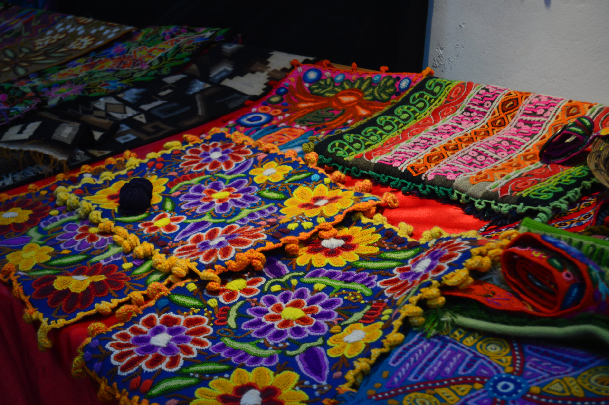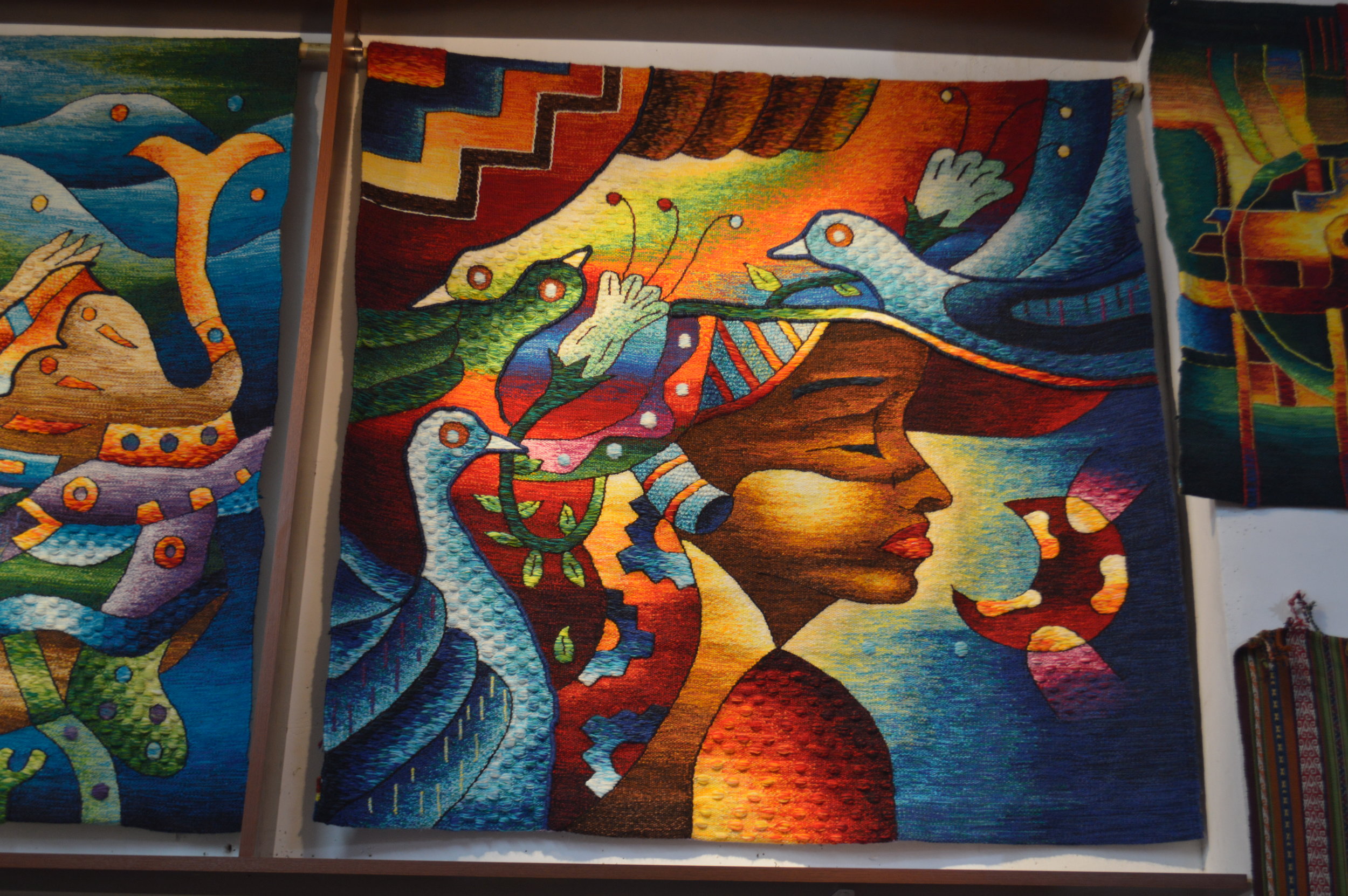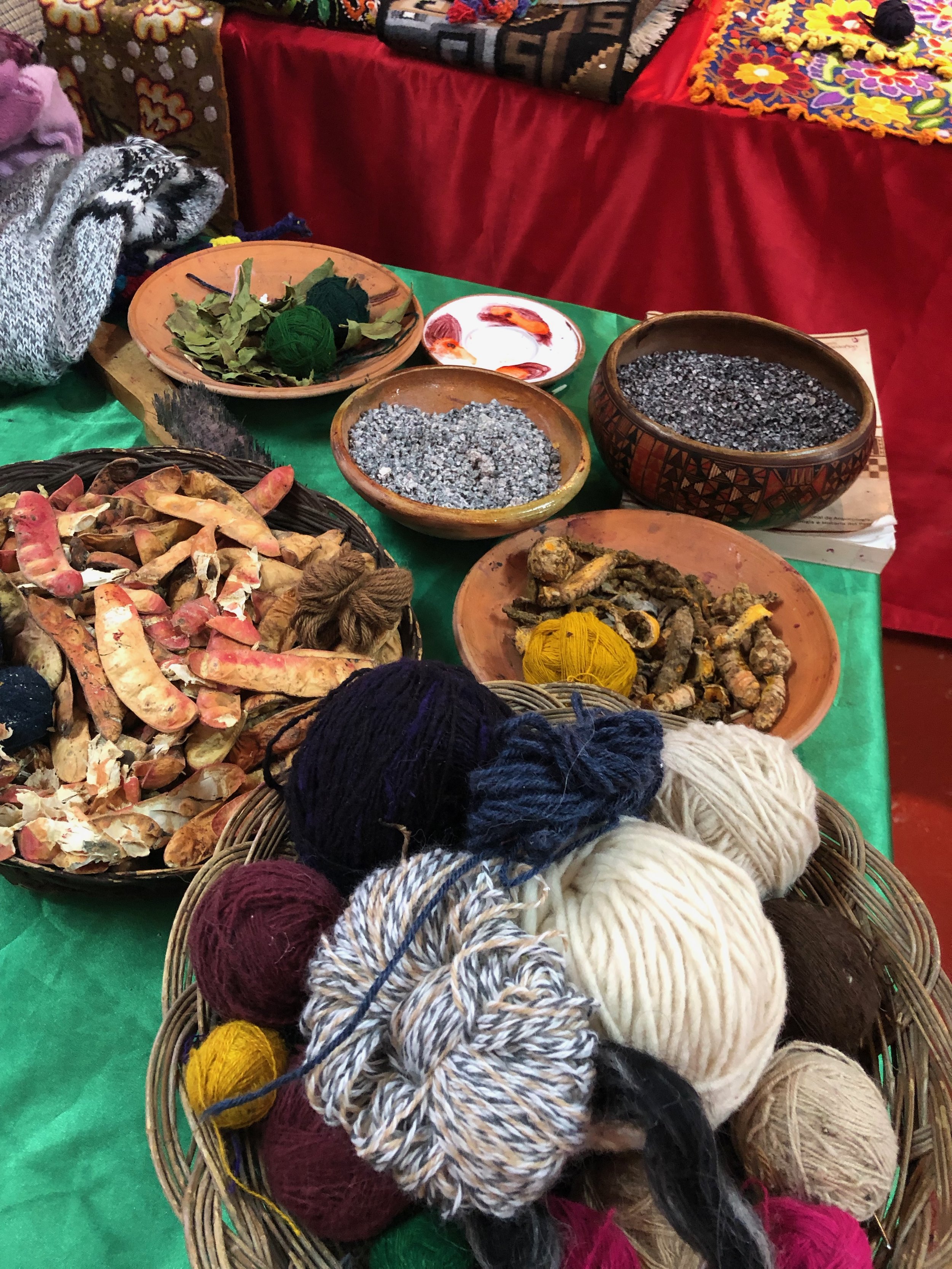 He showed us the variety of natural materials ranging from parasites to plants that they use as dyes for the textiles. Afterwards, he led us through a door which opened up to a backyard patio behind his store where this young boy was diligently weaving an intricate piece. My first thought was “Why isn’t he in school?” I asked him if he attended school, and he happily responded that he works in the morning and goes to school in the afternoon. I was truly humbled by his response.