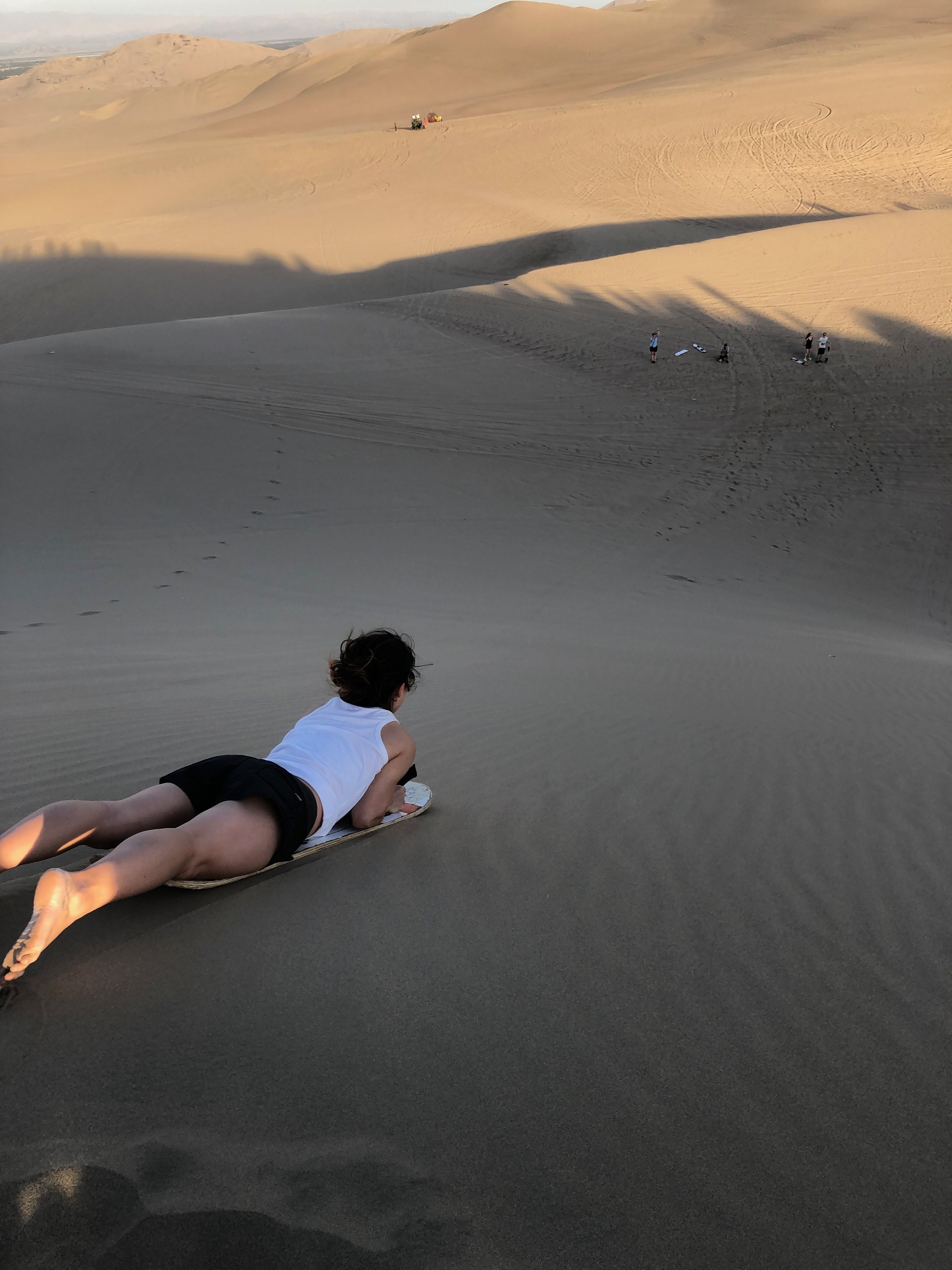 We were taken to a total of three spots. Our first stop overlooked dunes lining the horizon. At the second stop, they took the boards out for sandboarding. If you have sandboarding boots, make sure to take them with you since they don’t provide them! If not, then instead of strapping in your feet, you lay on your stomach, clench on the straps and slide down the dune that way. Keep your head up or wrap a bandana around your mouth to prevent eating boatloads of sand.