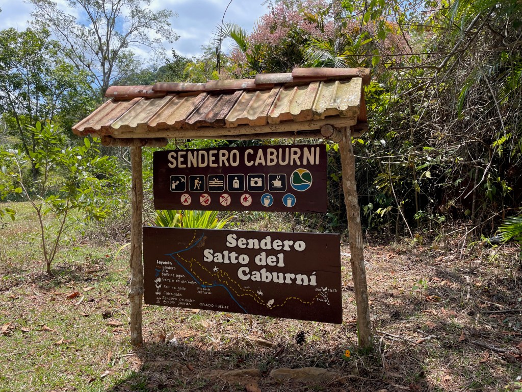We took Sendero del Caburní, a 2.5 km trail (5 km round trip) to a towering 64m waterfall plunging into several swimming holes. The first half of the trail is fairly easy until it drops steeply in the second half where you’ll have to watch your footing. Take your time on the return trip as it is uphill the entire way.