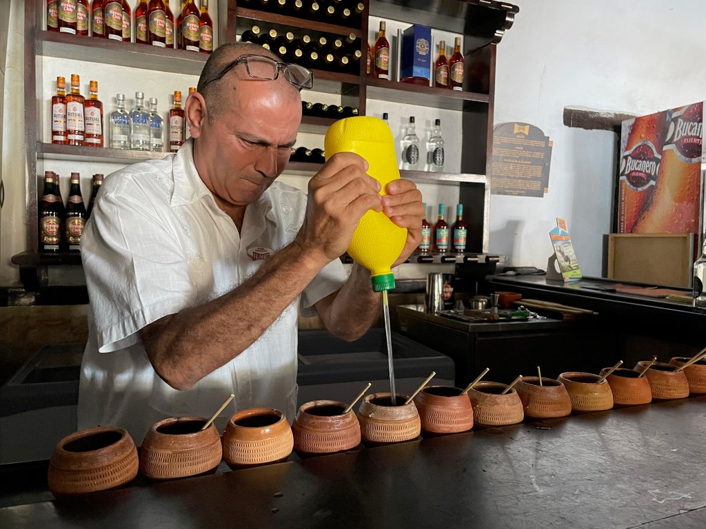 La Canchánchara is both the name of a bar in Trinidad, and the traditional cocktail itself. This classic Cuban cocktail is super simple, comprising of only a handful of ingredients: rum (usually Havana Club), honey, lime, and ice. Cancháncharas are sipped from simple clay mugs, which helps to keep them well-chilled. Of course, you can use a glass – but there is something to be said for the experience of drinking one from unglazed clay, ice-cold and beaded with condensation. A must-try!