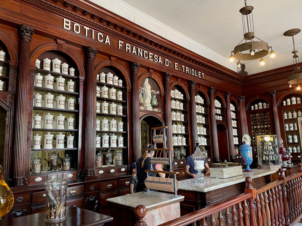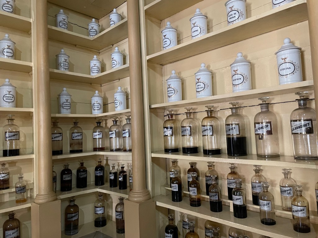 My favorite museum of the entire trip was here in Matanzas: Museo Farmaceútico (Pharmaceutical Museum). This museum was founded in 1882 by Earnesto Triolet and is the only one of its kind in the world. It was in use up until 1964. The original liquids (or what’s left of them) are still present in their original vestibules and bottles.